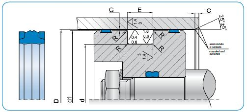 The assembling between the polyurethane element (with high elastic modulus), and the two elastomer rings (with high hardness), enhances stability of the sealing even in heavy duty applications.